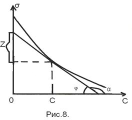 . Это выполняется графически. В различных точках кривой σ= f (c) проводятся касательные до пересечения с осью ординат и прямые, параллельные оси абсцисс. Как видно из рисунка