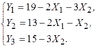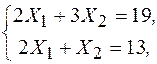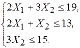 Производственные ограничения дополняются логическими ограничениями, связанными с природой введенных в рассмотрение переменных. В данном случае объемы выпуска товаров не могут быть отрицательными: x ³0. (2)