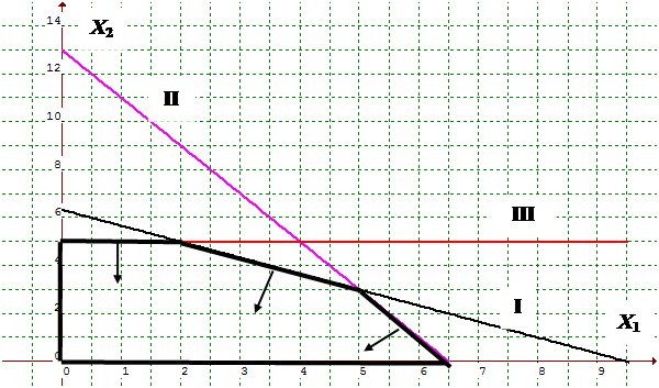 Рис. 1 Допустимое множество в проблеме производственного планирования