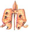 | Черепная коробка | Лицевые кости, кости черепа: 2-теменные, затылочная, 2-височные, лобная, верхняя и нижняя челюсть, верхняя челюсть, скуловая и носовая кости |