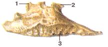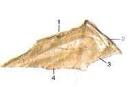 Рис. 1.23. Сошник Левая сторона. 1-решетчатый край; 2-левое крыло сошника; 3-свободный край; 4-небный край.