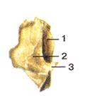 Рис. 1.22. Нижняя носовая раковина. Вид со стороны полости носа. I-слезный отросток; 2-решетчатый отросток; 3-нижний (свободный) край.