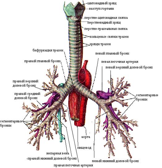 Рис. 4.5. Трахея и бронхи. Вид спереди.