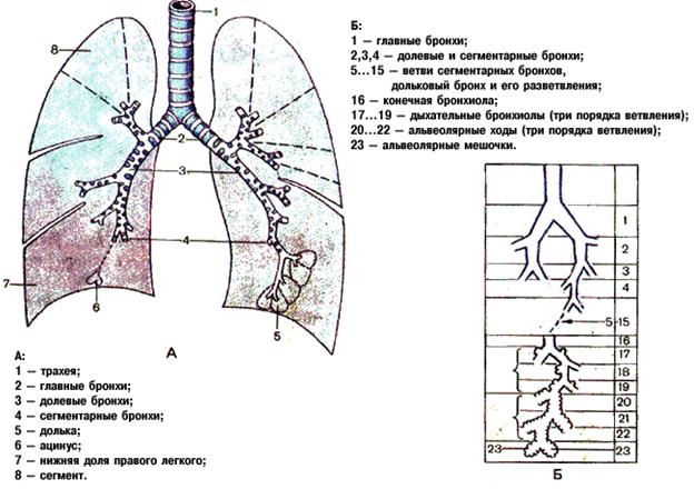 Рис. 4.9. Ветвление бронхов в легком (схема).
