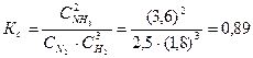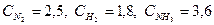Таким образом, реакция начиналась при концентрациях (моль/л): С(N2) = 4,3; С(H2) = 7,2.