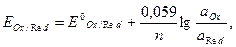 где Ox – окисленная форма веществ; Red – восстановленная форма веществ. Уравнение окислительно-восстановительного потенциала (