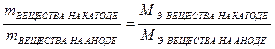 II закон Фарадея: при пропускании через раствор или расплав различных электролитов одинакового количества электричества, выделяющиеся на электродах массы веществ, прямопропорциональны молярным массам их эквивалентов: