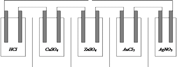 Например, при электролизе растворов HCI, CuSO4, ZnSO4, AuCI3, AgNO3 на катоде выделяется масса (г) соответствующего вещества, равная молярной массе его химического эквивалента (г/моль):