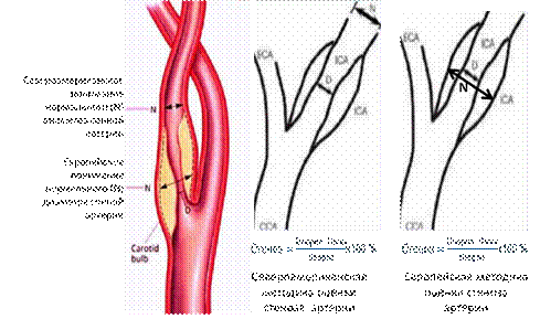 Рис. Североамериканская и Европейская методики оценки стеноза сонной артерии.