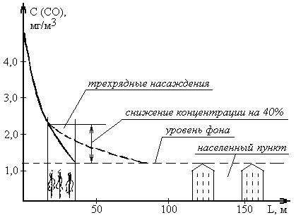 Пример снижения загрязнения придорожной зоны оксидом углерода (II) представлен на рис. В.1.