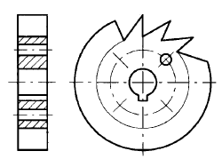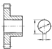 Для показа отверстий в ступицах зубчатых колес, шкивов и т. п., а также для шпоночных пазов вместо полного изображения детали допускается давать лишь контур отверстия (рисунок 78) или паза (рисунок 81).