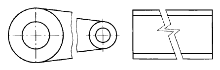 Предметы или элементы, имеющие постоянное или закономерно меняющееся поперечное сечение (валы, цепи, прутки, фасонный прокат, шатуны и т. п.) допускается изображать с разрывами. Частичное изображение и изображение с разрывами ограничивают одним из следующих способов (рисунок 79).