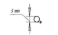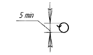 Условное графическое обозначение «развернуто» должно быть нанесено на чертеж в виде знака (рисунок 82), а условное графическое обозначение «повернуто» должно соответствовать знаку на рисунке 83. Знаки выполняются тонкой линией.