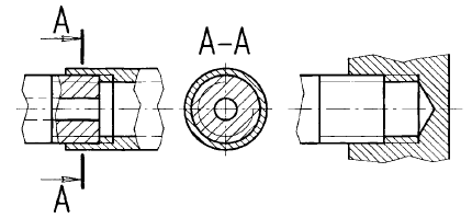 На разрезах резьбового соединения в изображении на плоскости, параллельной к его оси, в отверстии показывают только часть резьбы, которая не закрыта резьбой стержня (рисунок 90).