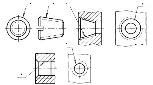 Обозначения конических резьб и трубной цилиндрической резьбы наносят, как показано на рисунке 95.