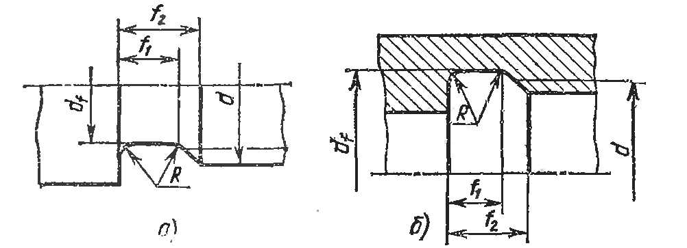 Проточки для метрических резьб (рисунок 97 а – наружная; б – внутренняя)