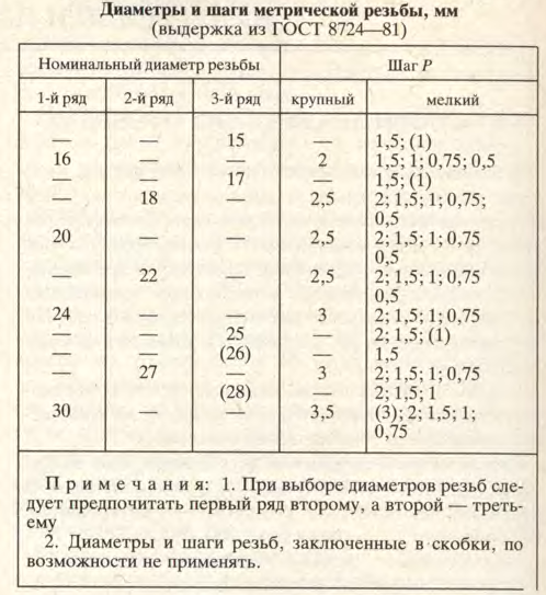ГОСТ 8724-81 устанавливает диаметры и шаги метрической резьбы (таблица 8).