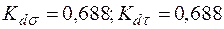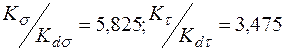 Значения коэффициентов снижения предела выносливости: