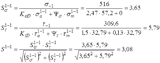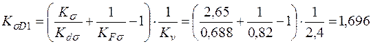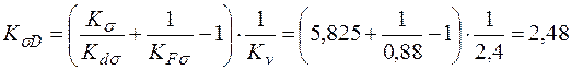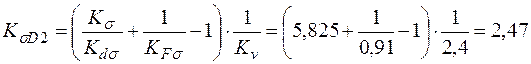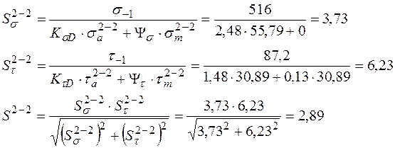 Из полученных значений коэффициентов снижения выносливости в сечении 2-2 выбираем для расчета коэффициенты с наибольшим значениям