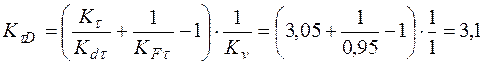 Значение общего коэффициента запаса прочности в сечении 1-1