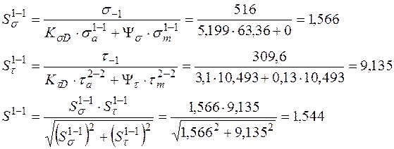 , значит, усталостная прочность в сечении 1-1 обеспечена.