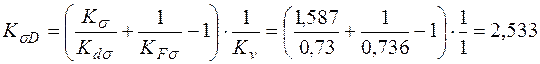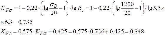и по графикам и формулам рис. 4.1 определяем значения эффективных коэффициентов концентрации напряжений для ступенчатого перехода с галтелью в сечении 2-2: