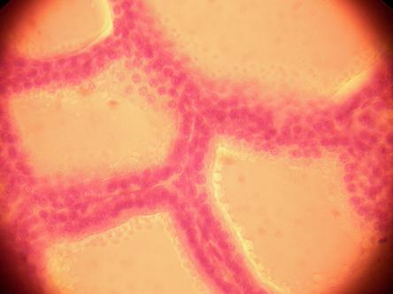 б) найти междольковую соединительную ткань. В прослойках соединительной ткани расположены сосуды. Волокна соединительной ткани, делящие железу на дольки тонкие и плохо различимы на препаратах. В местах расположения междольковых сосудов соединительной ткани больше и эти участки хорошо видны.