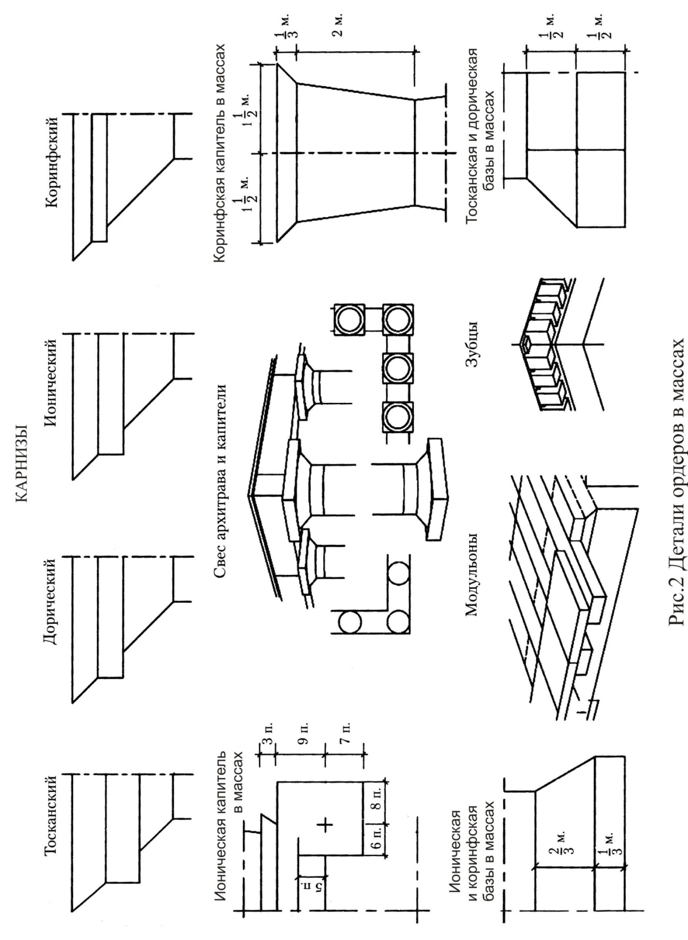 Построение ордеров в массах – это упрощенное их изображение, в котором исключаются мелкие подробности, и все кривые линии условно заменяются прямыми (рис 2, 3).