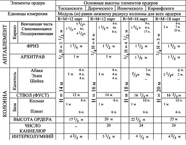 Так как все части ордера по своим размерам зависят одна от другой, здесь нет места абсолютным величинам таким, как метр, сантиметр.