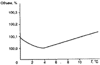 Рис. 4. Объем, занимаемый 1 кг воды при различных температурах