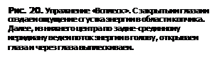Как выполняется упражнение «Всплеск» (рис. 20). Напомним вкратце. Из нижнего центра по задне-срединному меридиану поток энергии идет в голову и через глаза выбрасывается. С помощью этого упражнения мы вводим схему движения энергии к голове. Приучаем к этому движению свой организм, чтобы данный процесс стал для него привычным. Мы преследуем несколько целей. Во-первых, дополнительное поступление энергии в тот момент, когда голове энергии не хватает. Произошла обесточка или повысилась нагрузка на голову (нужно интенсивно о чем-то подумать). Значит, необходимо подать дополнительное питание. Тогда и включается «Всплеск». Одновременно нам нужно, чтобы через глаза выходил мощный поток энергии. Для того, чтобы мозг получал достаточный объем информации и мог ее проанализировать. И для того, чтобы мы хорошо видели. «Всплеск» – это профилактика падения остроты зрения у детей, у взрослых при интенсивной нагрузке на глаза, особенно у тех, кто работает с компьютером, кто много читает, кому приходится много писать. А наши глаза к этому не приучены.