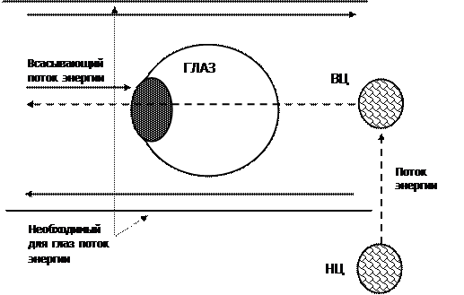 Рис. 26. Выполняя упражнение «Прокачка глаз» мы активизируем, расширяем потоки энергии, проходящие через глаза. Параллельно мы делаем «Всплеск», активизируя Нижний центр, приучая организм подавать энергию в центр головы и направлять ее вовне через глаза.