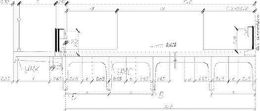 Компоновку пролетных строений из балок следует выполнять с учетом габаритов по ширине для мостов на автомобильных дорогах общего пользования. При этом расстояния между осями соседних балок принимаются 1,66 -1,73 м. Расстояние между осями крайних балок должно быть на 10 ¸ 25 см больше размера габарита проезда, включая полосы безопасности. Схемы