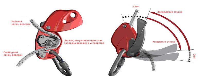 - позволяет «пропихнуть» двойную веревку и даже узел
