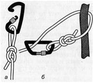 !!! в данном случае нельзя допускать попадания карабина и узла на перегибы.