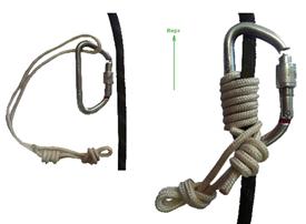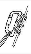 ВНИМАНИЕ! Если узел используется как основной (т.е. нагружен весом человека или является единственной страховкой ненадёжно стоящего человека), то карабин должен быть замуфтован.