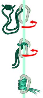 Надёжность схватывания узла зависит от количества витков на верёвке. Обычно применяют 4 оборота.