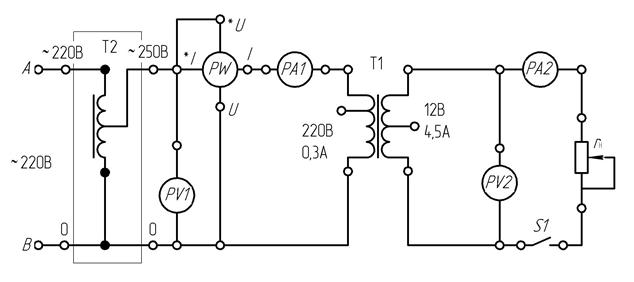 Рис. 5.1. Принципиальная схема установки для исследования однофазного трансформатора