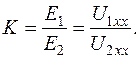 Коэффициентом трансформации К называется отношение э.д.с. первичной обмотки Е 1 к э.д.с. вторичной обмотки Е 2. Действующие значения этих э.д.с определяются выражениями: