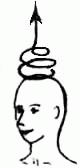7. Хотя в методичке написано, что Учитель стоит перед Учеником, удобней стоять сбоку, справа или слева, кому как удобней. В данном случае местоположение Учителя не существенно. Учитель делает 3-4 круговых движения ладонью (всё равно какой руки) по часовой стрелке над макушкой Ученика. Далее есть два варианта. (1) Первоначально на курсах учили, что сделав круговые движения надо плавно поднять руку вверх, тем самым вытягивая энергию кверху. Ладонь всё время ориентирована на макушку Ученика. Этим активизируется выброс энергии через макушку. Поступление энергии в организм активизируется процедурами пп. 2, 3, 5. (2) Потом стали учить, что сделав круговые движения надо опустить руку вниз вдоль переднесрединного меридиана, тем самым активизируя движение энергии по меридиану. Ладонь ориентирована во время вращательных движений на макушку Ученика, а когда опускается ¾ по направлению движения. На мой взгляд, надо использовать в упражнении оба варианта.
