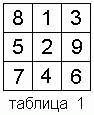 Представьте на экране таблицу из 9 квадратов 3´3. Заполните её под диктовку учителя. Получилась таблица 1.