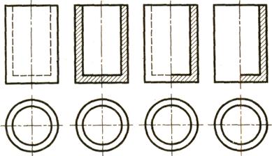 Сечение – это изображение фигуры, получающейся при мысленном рассечении предмета одной или несколькими плоскостями. На сечении показывают только то, что получается непосредственно в секущей плоскости. (рисунок 2.6). Сечения разделяют на вынесенные и наложенные.