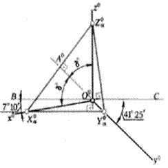 При построении этой проекции ось z0 располагают вертикально. Ось x0 располагают под углом 7º10', а ось y0 – под углом 41º25' к горизонтали (рисунок 2.9). Приближенно аксонометрические оси стандартной диметрии можно построить, если принять tg 7º10'≈1/8, tg 41º25'≈7/8.