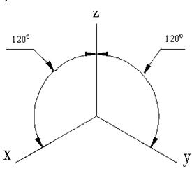 Рисунок 2.9 – Расположение осей в диметрической проекции