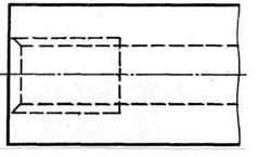 Р е з ь б а в о т в е р с т и и. Резьбу в отверстии в продольном разрезе изображают сплошными тонкими линиями по наружному диаметру и сплошными толстыми основными по внутреннему диаметру (рисунок 2.21,б).Границу резьбы показывают сплошной толстой — основной линией (рисунок 2.21,б), доводя ее до наружного диаметра резьбы. На видах, где отверстие с резьбой проецируется в виде окружности, по наружному диаметру резьбы сплошной тонкой линией проводят дугу окружности, приблизительно равную 3/4 окружности, разомкнутую в любом месте (но только не на центровых линиях), а контур отверстия (внутренний диаметр резьбы) очерчивают толстой основной линией (рисунок 2.21,б). Резьбу в отверстии без разреза изображают штриховыми линиями (рисунок 2.22).
