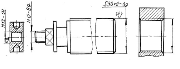 Свинчиваемые детали, как правило, должны иметь одинаковую точность резьбы. Сопрягаются обычно резьбы со следующими полями допусков: точный класс—стержень 4g, отверстие 4Н, 5Н; средний класс—стержень 6g, отверстие 6Н; грубый класс—стержень 8g, отверстие 7Н.