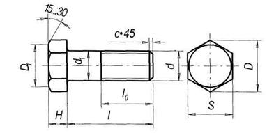Болт. Болт представляет собой цилиндрический стержень, на одном конце которого имеется головка, на другом — резьба для навинчивания гайки, рисунок 2.30