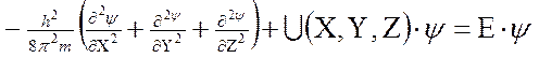 где h – постоянная Планка, m – масса электрона, U – потенциальная энергия, Е – полная энергия, ψ – волновая (пси) функция. Первый член уравнения