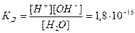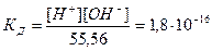отсюда [H+] [OH-] = (1,8 10-16) 55,56 = 10-14 г-ион2/л2.