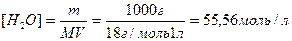 где [H+] и [OH-] – равновесные концентрации в г-ион/л соответственно катионов водорода и гидроксо-анионов, а [H2O] – равновесная концентрация воды в моль/л. Учитывая, что степень диссоциации воды чрезвычайно мала, равновесную концентрацию недиссоциированных молекул воды вполне можно приравнять к общему количеству воды, заключающемуся в 1 л ее: